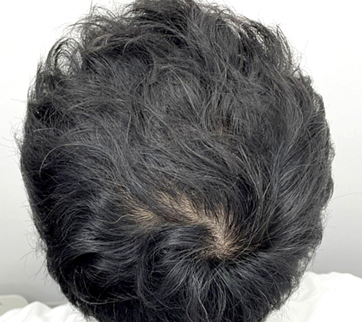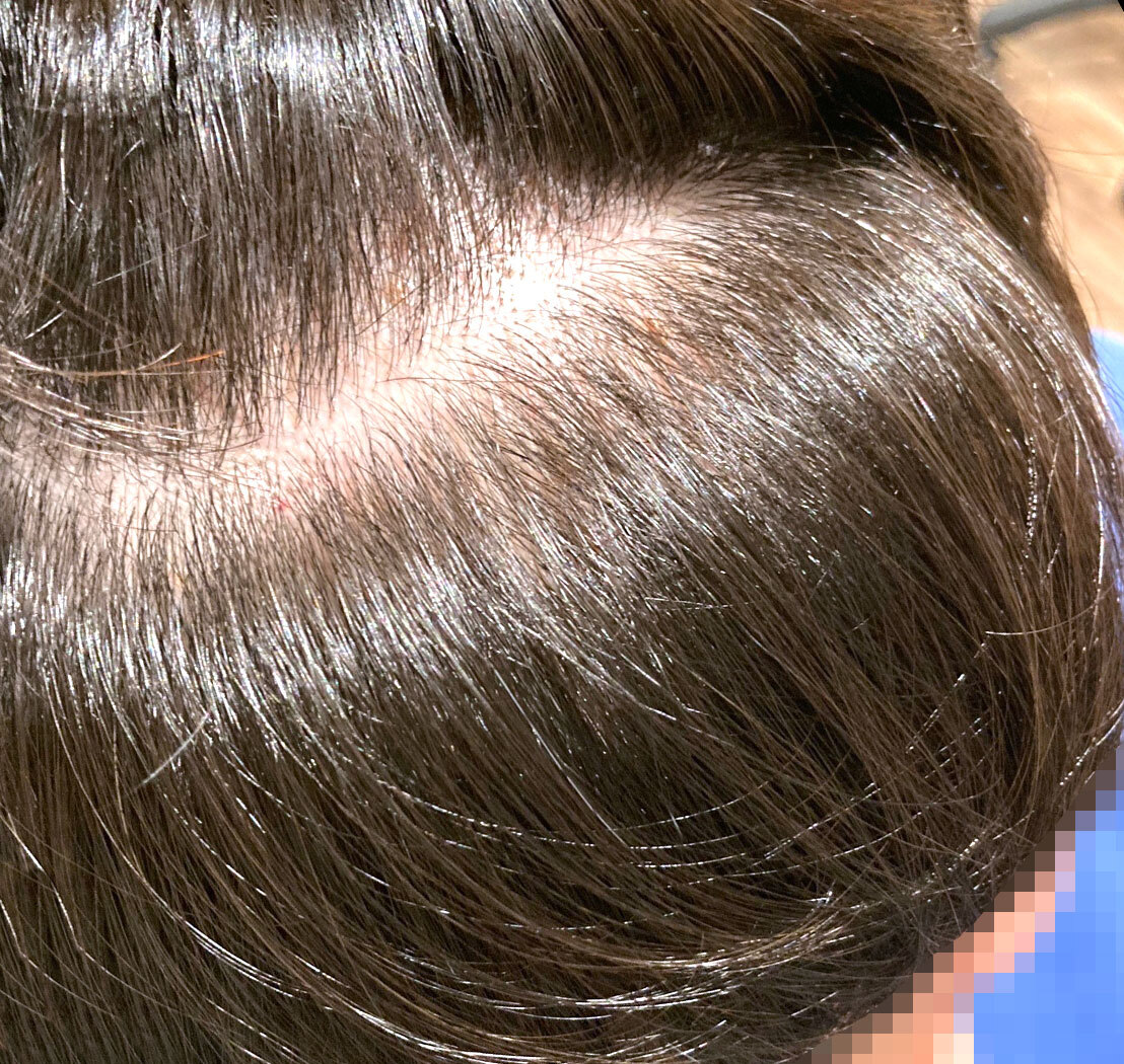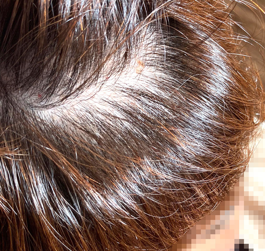 女性に多い脱毛症です。頭全体が均一に薄くなるため、脱毛している部分の境界がはっきりしません。