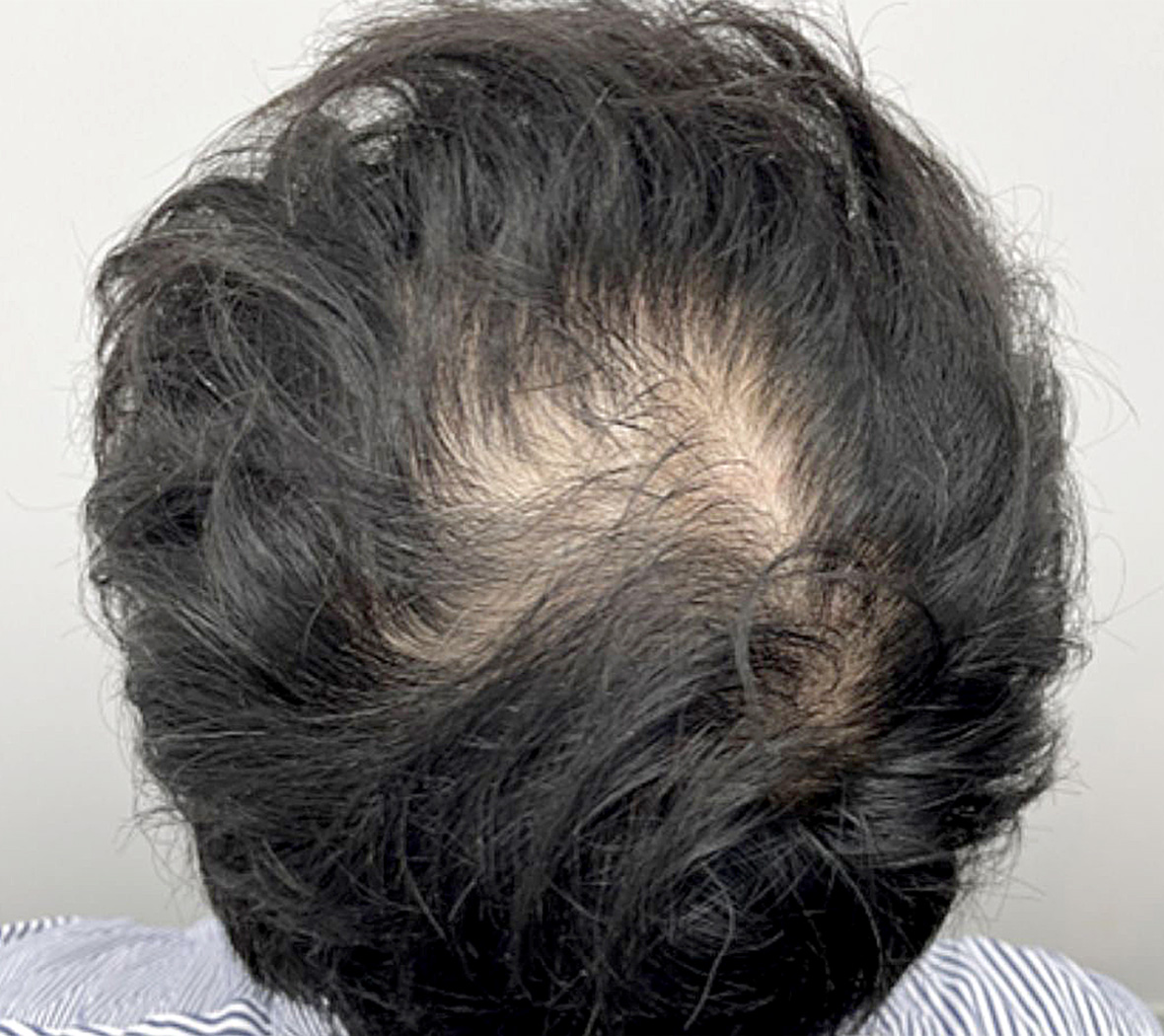 成人男性特有の脱毛症で、生え際や頭頂部の毛髪が薄くなります。遺伝または男性ホルモンの異常が原因です。